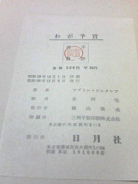 アプトン シンクレアと言うアメリカの有名な作家が1950年ごろに書いた「敵も持っていた」と「砂漠の夜の夢」に翻訳者の並河亮氏の評伝、「アプトンシンクレアの歩んだ道」を合わせた本で1954年に日月社というところより出た初版本です、232ページ